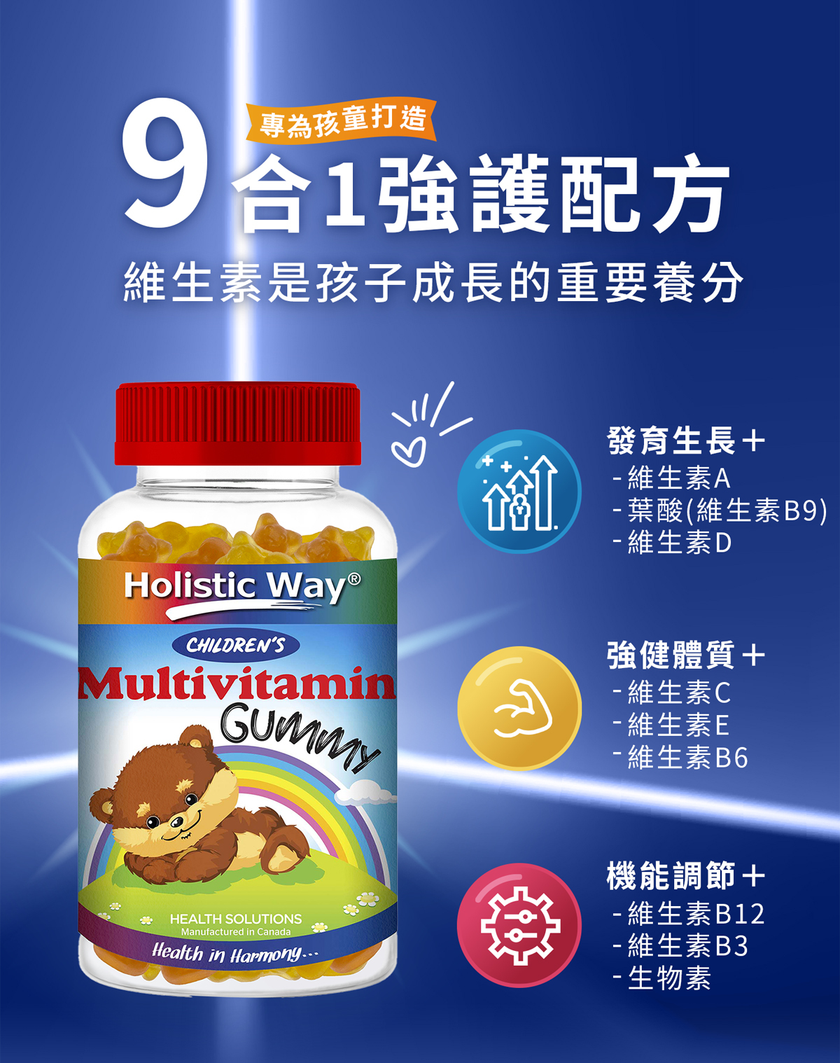 • 綜合維生素可以幫助兒童的健康生長和發育