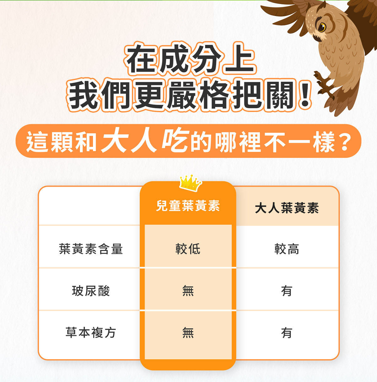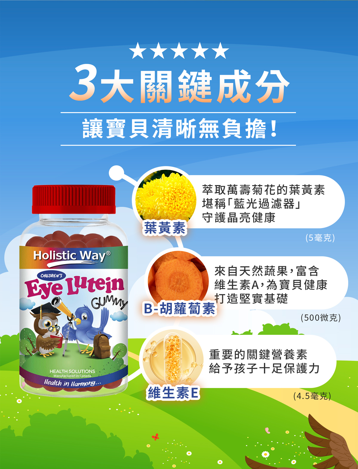 添加β-胡蘿蔔素後,葉黃素在我們體內轉化為維生素 A,有助於維持在暗處的視覺,還能增進皮膚與黏膜的健康。幫助牙齒和骨骼的發育與生長。